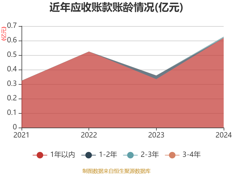 从应收账款账龄结构来看,截至2024年末,公司账龄在1年以内的应收账款余额为0.62亿元,较上年末增长2832.21万元。