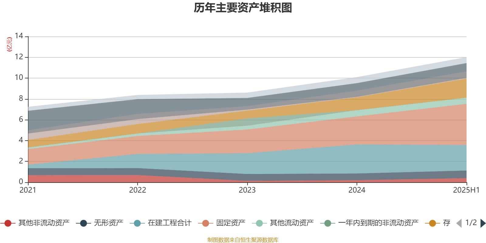 资产重大变化方面,截至2025年上半年,公司在建工程合计较上年末减少12.07%,占公司总资产比重下降7.22个百分点;固定资产较上年末增加46.97%,占公司总资产比重上升6.26个百分点;存货较上年末增加48.76%,占公司总资产比重上升3.06个百分点;其他非流动资产较上年末增加99.74%,占公司总资产比重上升1.32个百分点。