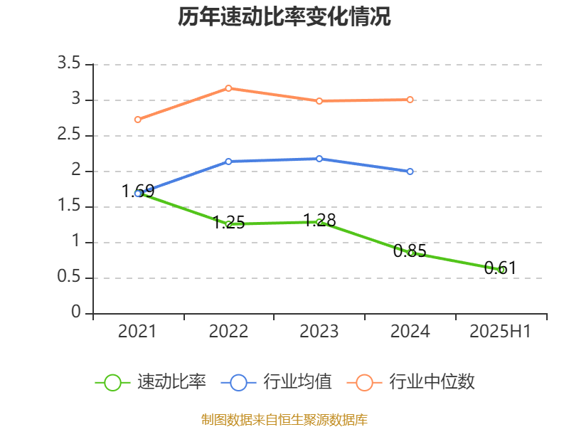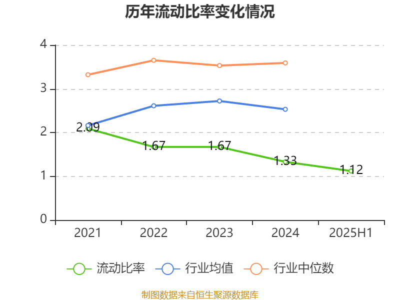 2024年,公司流动比率为1.33,速动比率为0.85。2025年上半年,公司流动比率为1.12,速动比率为0.61。