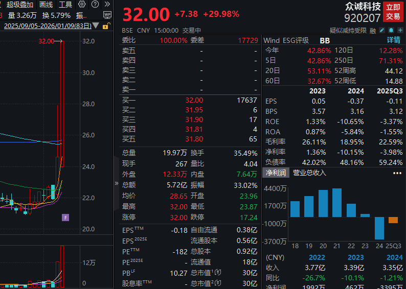 放量30CM涨停、换手率超35%!众诚科技火速回应