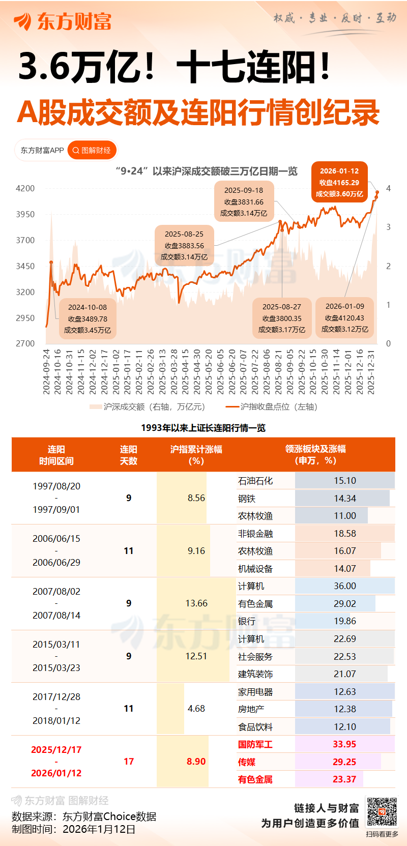全市场超4100只个股上涨,其中201只个股涨停。沪深两市成交额3.6万亿元,连续第2个交易日突破3万亿,较上一个交易日放量4787亿,刷新此前在2024年10月8日创下的成交额历史纪录。