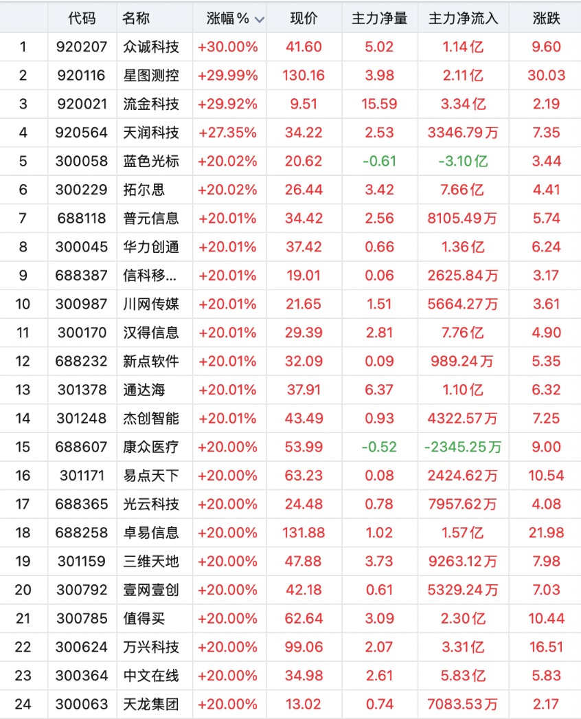 1月12日,AI应用板块全线爆发,AI、智谱AI、Sora概念、AI+营销、AI智能体等板块掀起涨停潮。截至当日14时,众诚科技、星图测控、值得买、天龙集团、昆仑万维、蓝色光标、拓尔思、中文在线、用友网络等80余只股票集体涨停。港股方面,人工智能概念股继续冲高,截至当日14时,智谱涨超40%,MINIMAX-WP涨超29%,微盟集团涨超20%,第四范式涨超18%。