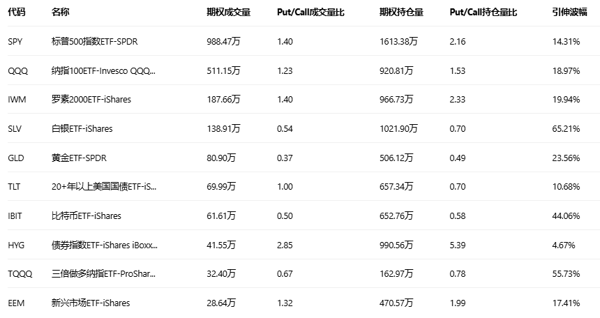 美股ETF期权成交量排行榜前十