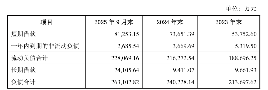 鑫科材料坦言,近年来,为了保持业务持续稳定发展,公司通过金融机构借款等方式满足日常营运资金需求,整体负债规模逐年上升。截至2025年9月末,公司资产负债率(合并口径)为59.24%,资产负债率较高;公司流动比率为1.06,短期偿债能力较弱。未来随着公司业务不断扩张,经营规模不断扩大,公司有可能进一步增加债务融资规模,公司存在一定的偿债风险。