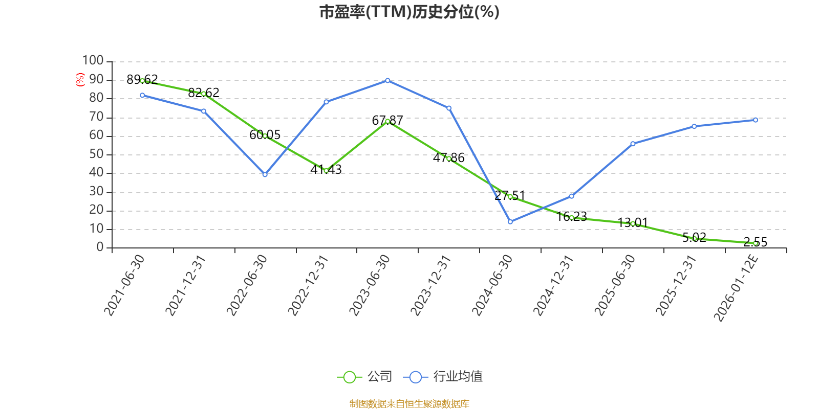 市盈率、市净率为负时,不显示当期分位数,会导致折线图中断。