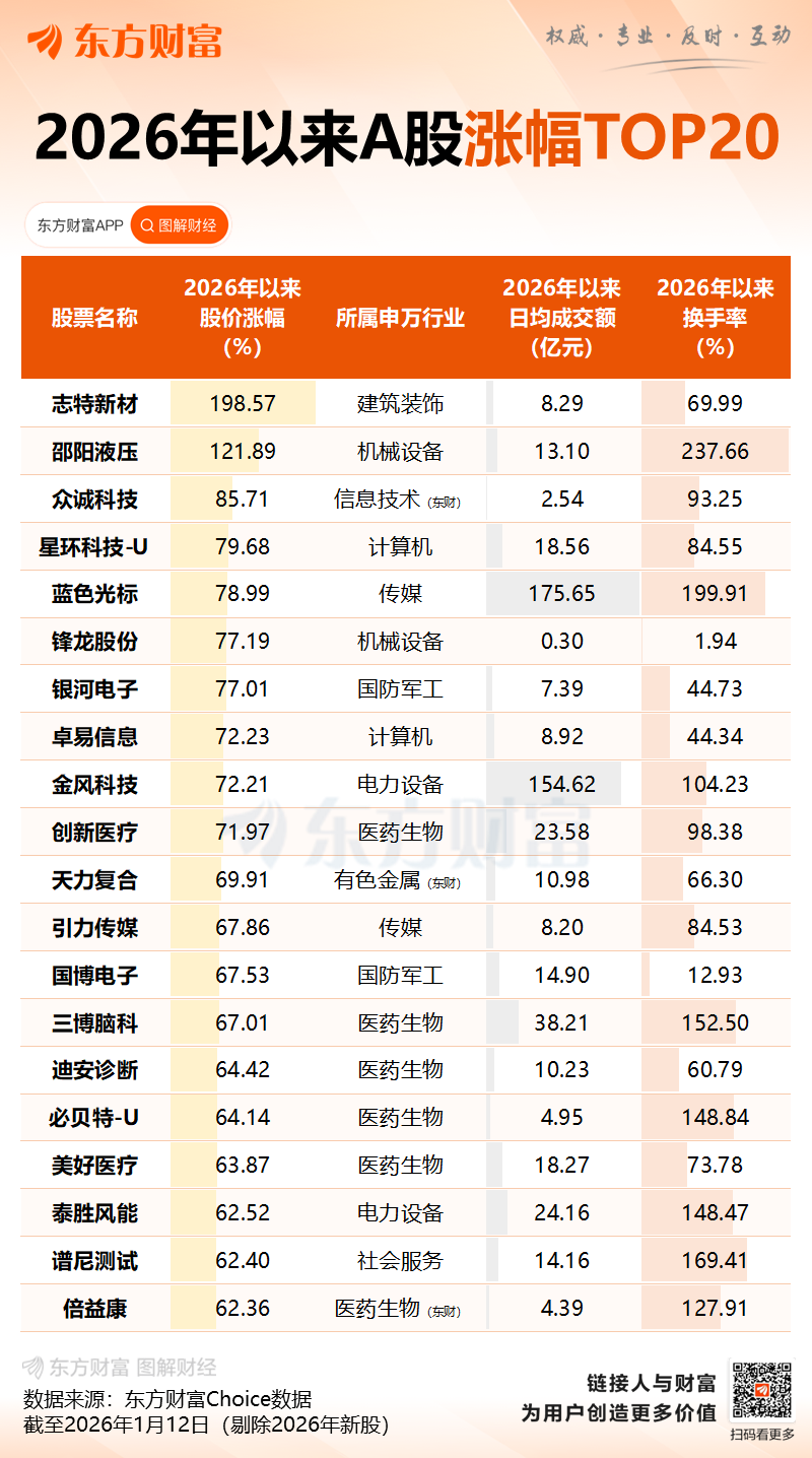 数据显示,今年开年以来,公司股价已连续斩获6个“20cm”涨停板。同时,志特新材也是截至目前A股市场今年表现最佳股票。