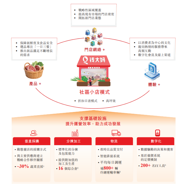 截至2025年9月30日,钱大妈门店网络包括遍布中国14个省、直辖市及特别行政区的2,938家社区门店,拥有1754名加盟商。同时,通过微信小程序、App等自有平台以及第三方外卖配送平台,钱大妈已建立了线上销售渠道。