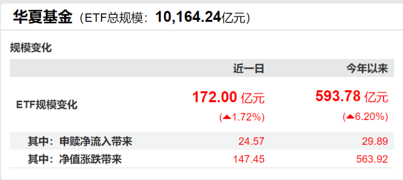 根据1月13日早间更新的数据,截至1月12日收盘华夏基金旗下ETF管理规模突破1万亿元,为1.02万亿元,是境内首家“万亿”ETF管理人。截至目前,境内ETF总规模约为6.27万亿元,来自58家管理人,仅华夏基金一家的管理规模,就占据了逾15%的市场份额。
