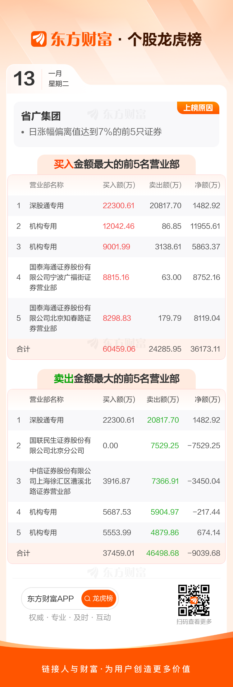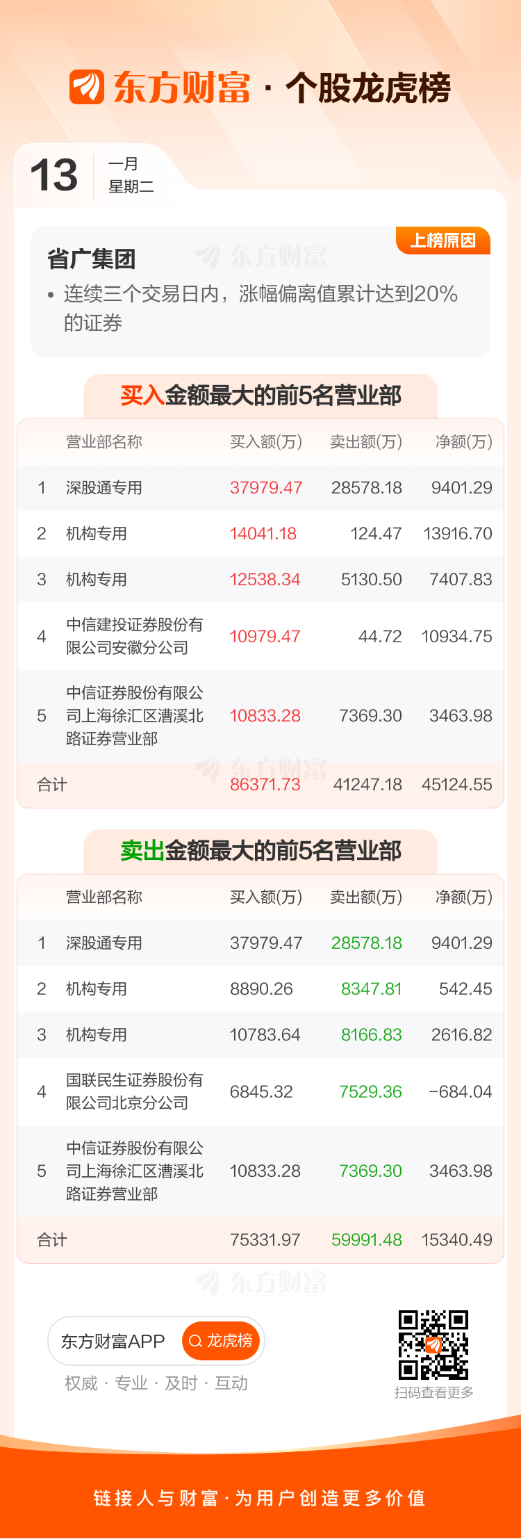 省广集团(002400)龙虎榜数据(01-13)