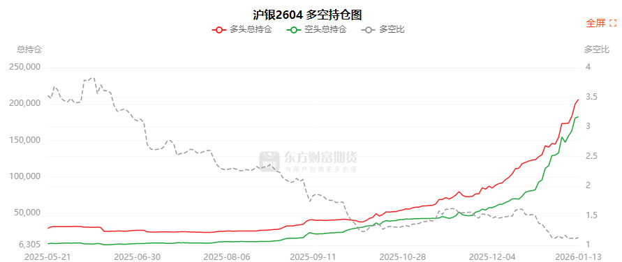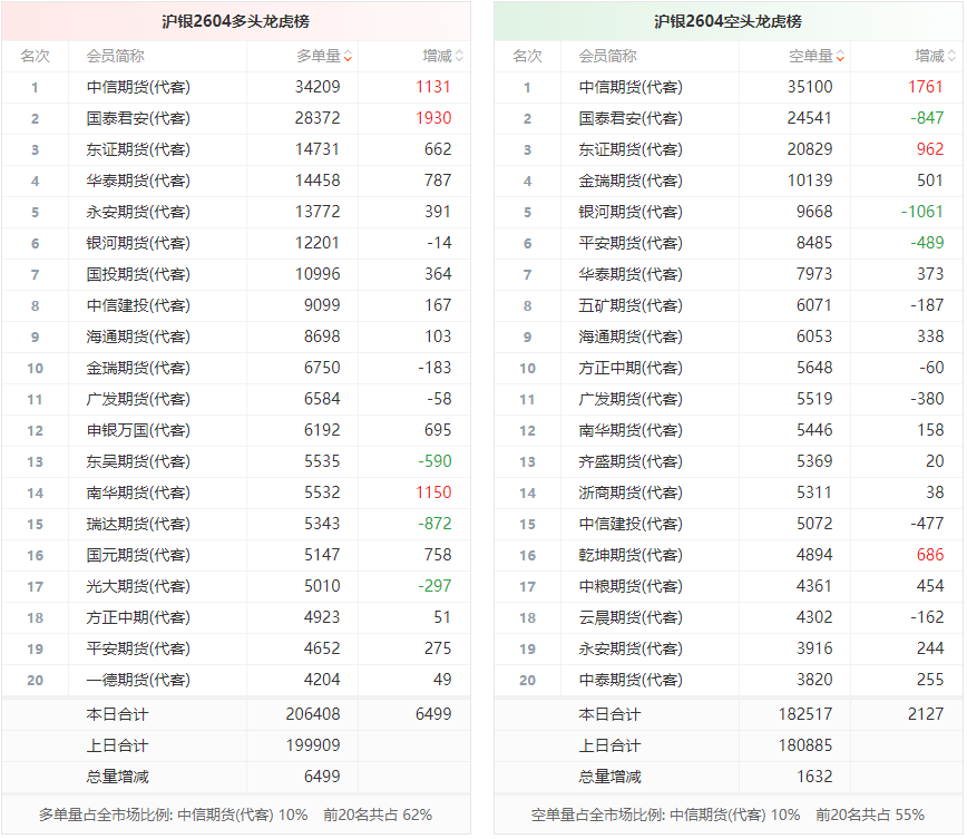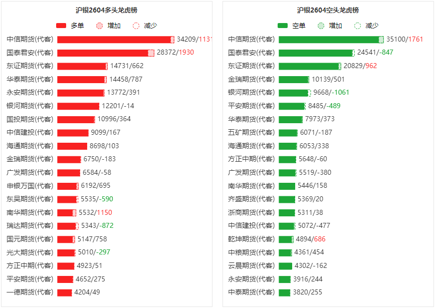 总体而言,沪银2604合约今日增仓上行,多空持仓排名前20席中,多空双方均呈进场态势,多头进场意愿强于空头。