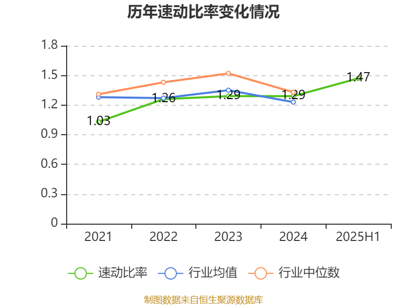2024年,公司流动比率为1.68,速动比率为1.29。2025年上半年,公司流动比率为1.88,速动比率为1.47。