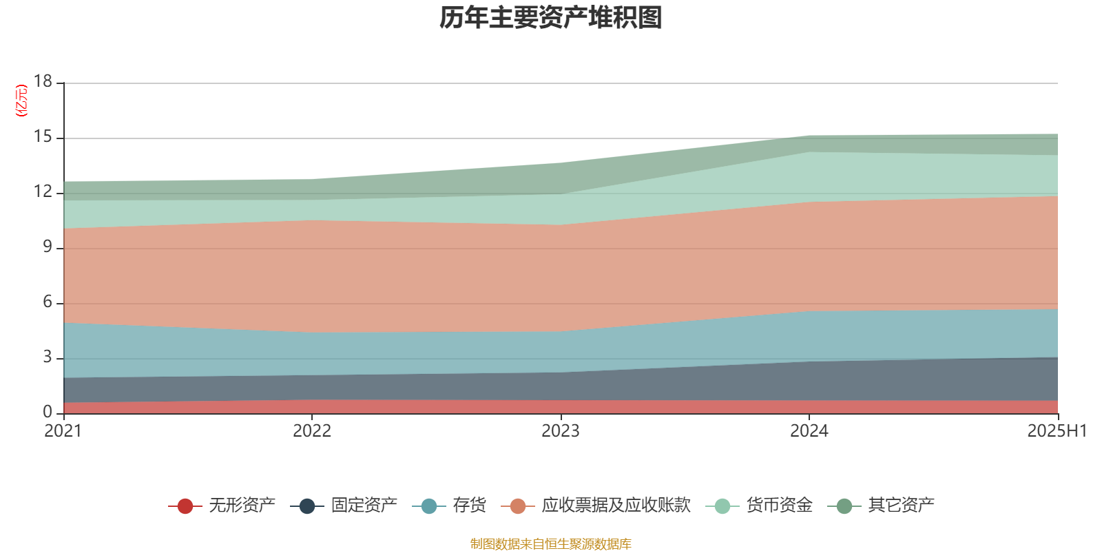 资产重大变化方面,截至2025年上半年,公司货币资金较上年末减少18.33%,占公司总资产比重下降3.37个百分点;应收款项融资较上年末增加263.57%,占公司总资产比重上升2.86个百分点;固定资产较上年末增加11.74%,占公司总资产比重上升1.57个百分点;应收票据及应收账款较上年末增加3.8%,占公司总资产比重上升1.29个百分点。