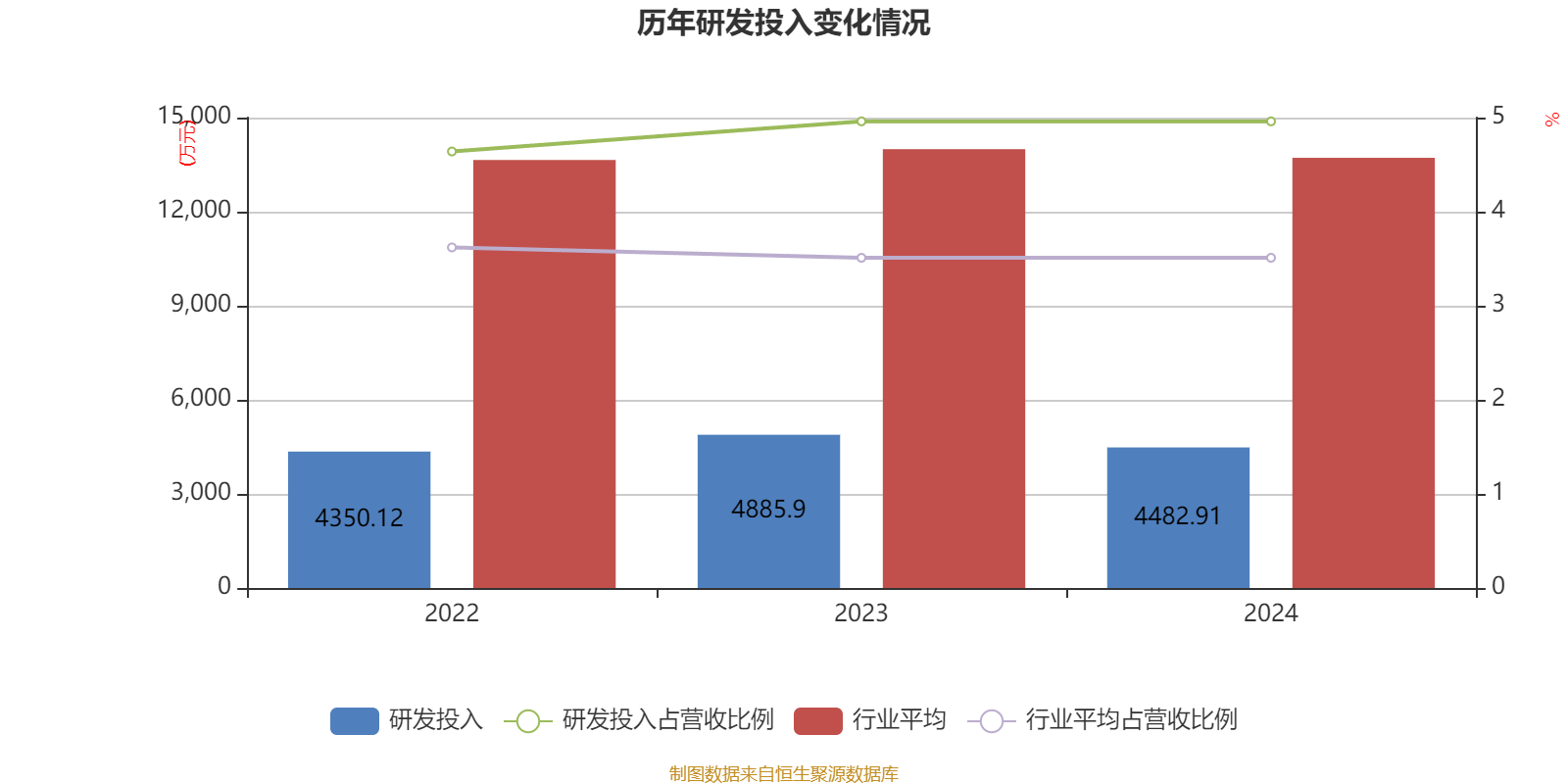 2024年全年,公司研发投入金额为4482.91万元,同比下降8.25%;研发投入占营业收入比例为4.96%,相比上年同期持平。此外,公司全年研发投入资本化率为0%。