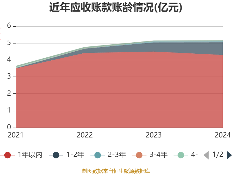 从应收账款账龄结构来看,截至2024年末,公司账龄在1年以内的应收账款余额为4.29亿元,较上年末下降2001.41万元。