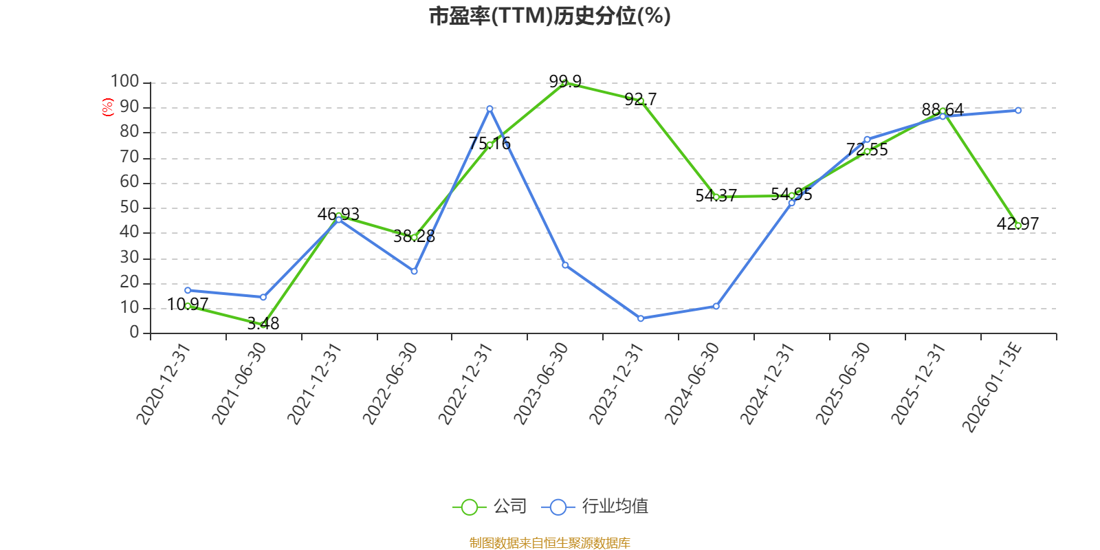 市盈率、市净率为负时,不显示当期分位数,会导致折线图中断。
