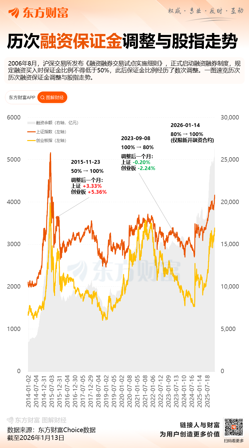2026年1月14日,经中国证监会批准,沪深北交易所发布通知调整融资保证金比例,将投资者融资买入证券时的融资保证金最低比例从80%提高至100%。