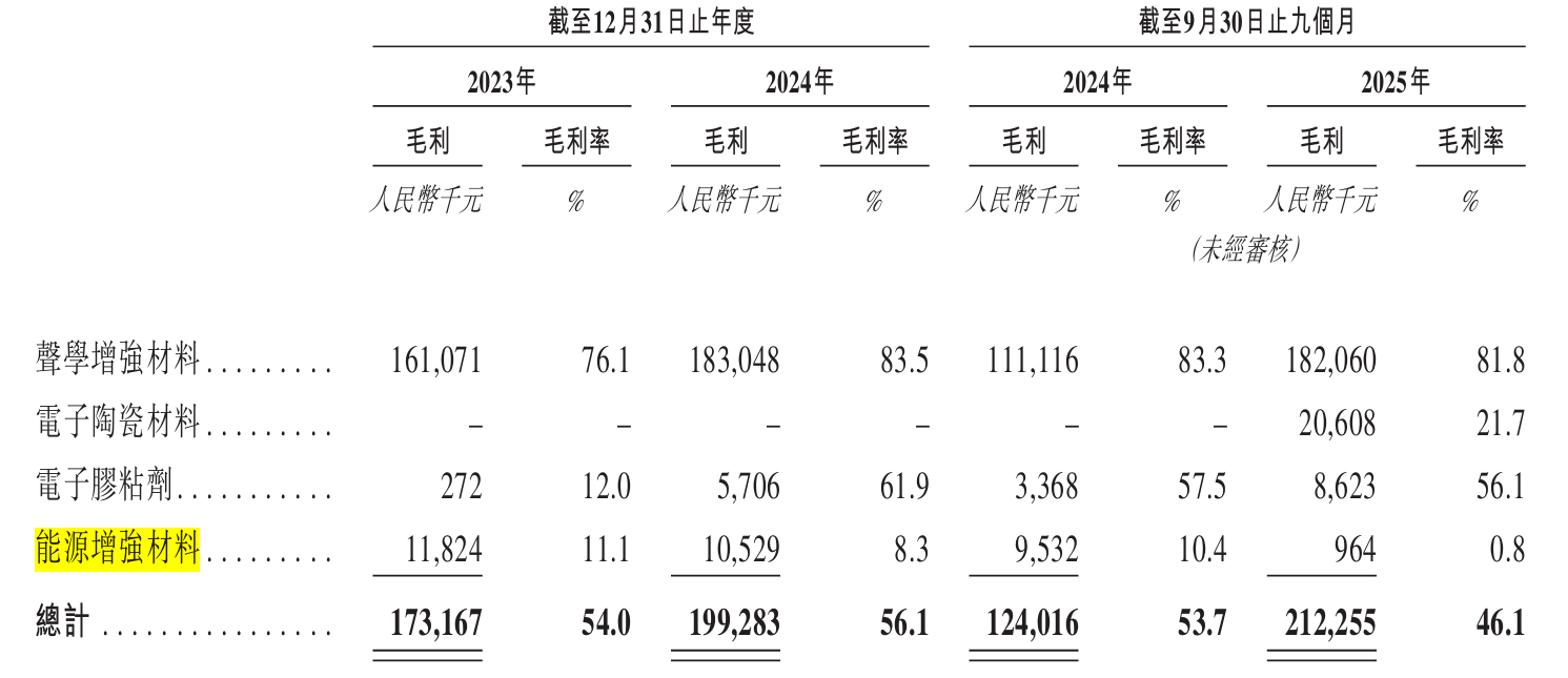 细看业务板块,“第二增长曲线”——能源增强材料业务,毛利率从2023年的11.1%狂泻至2025年三季度的0.8%。贝斯特新材解释称,这主要是由于光伏行业的市场竞争加剧,而光伏行业是该等材料的主要终端市场。