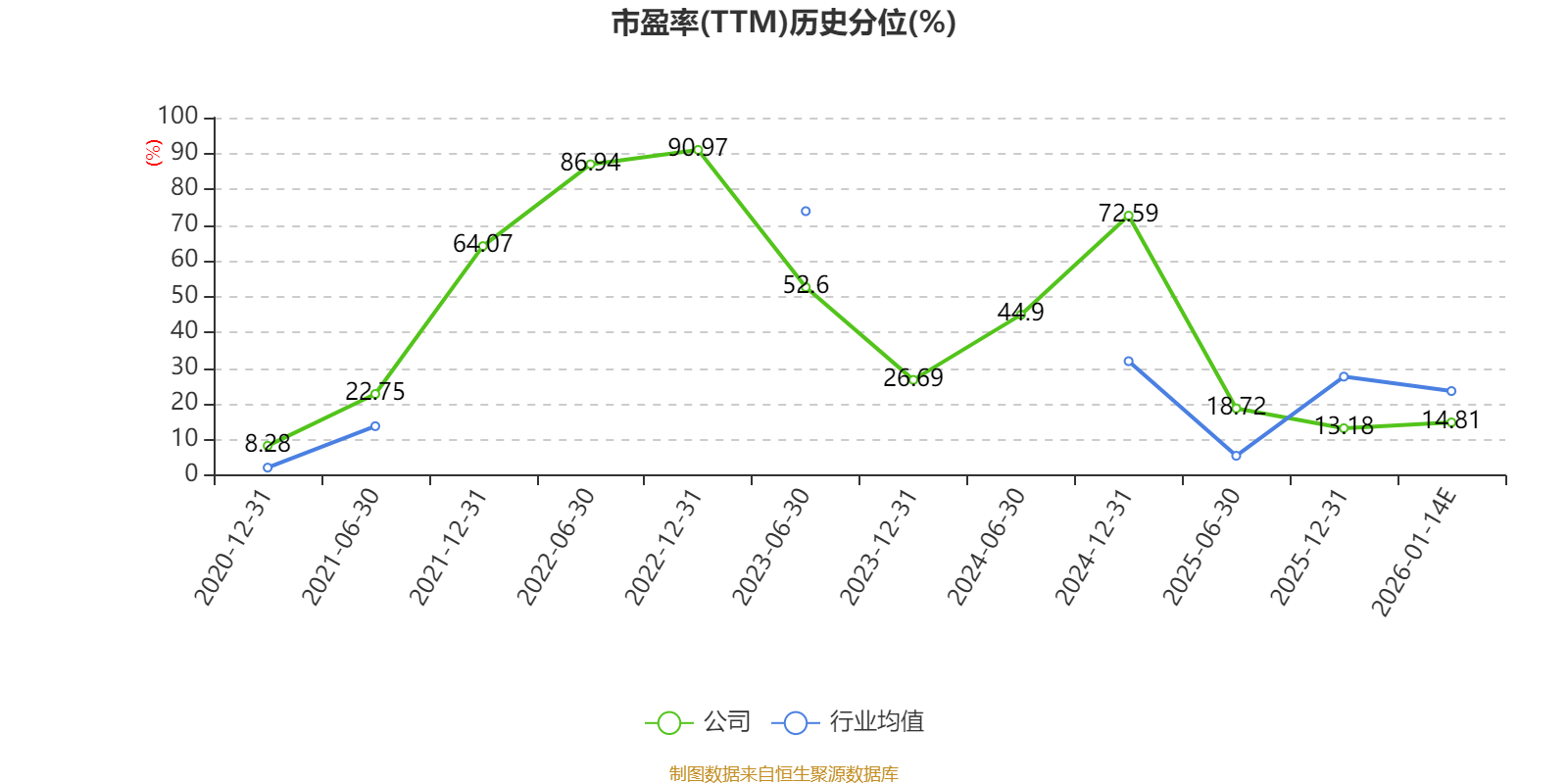 以本次披露业绩预告均值计算,公司近年市盈率(TTM)图如下所示: