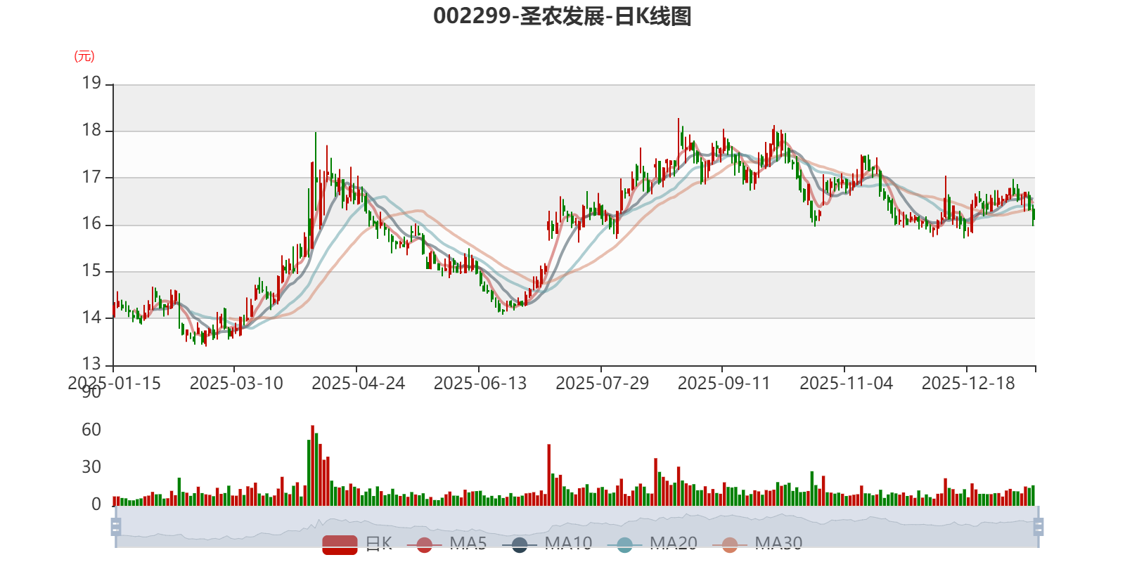 中证智能财讯圣农发展(002299)1月14日晚间披露2025年度业绩预告,预计2025年归母净利润13.7亿元至14.3亿元,同比增长89.16%-97.44%;扣非净利润预计8.3亿元至8.9亿元,同比增长20.12%-28.81%;基本每股收益1.1115元/股-1.1602元/股。以1月14日收盘价计算,圣农发展目前市盈率(TTM)约为14.01倍-14.63倍,市净率(LF)约1.82倍,市销率(TTM)约1.03倍。