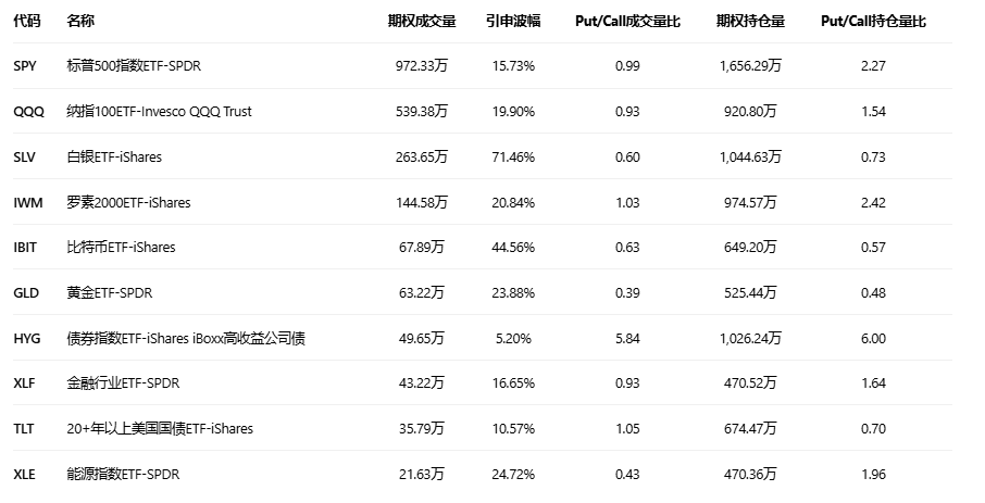 美东时间1月13日,美股指数期权市场成交量抬升,共成交609万份合约。看跌/看涨成交比下跌,达到1.01。