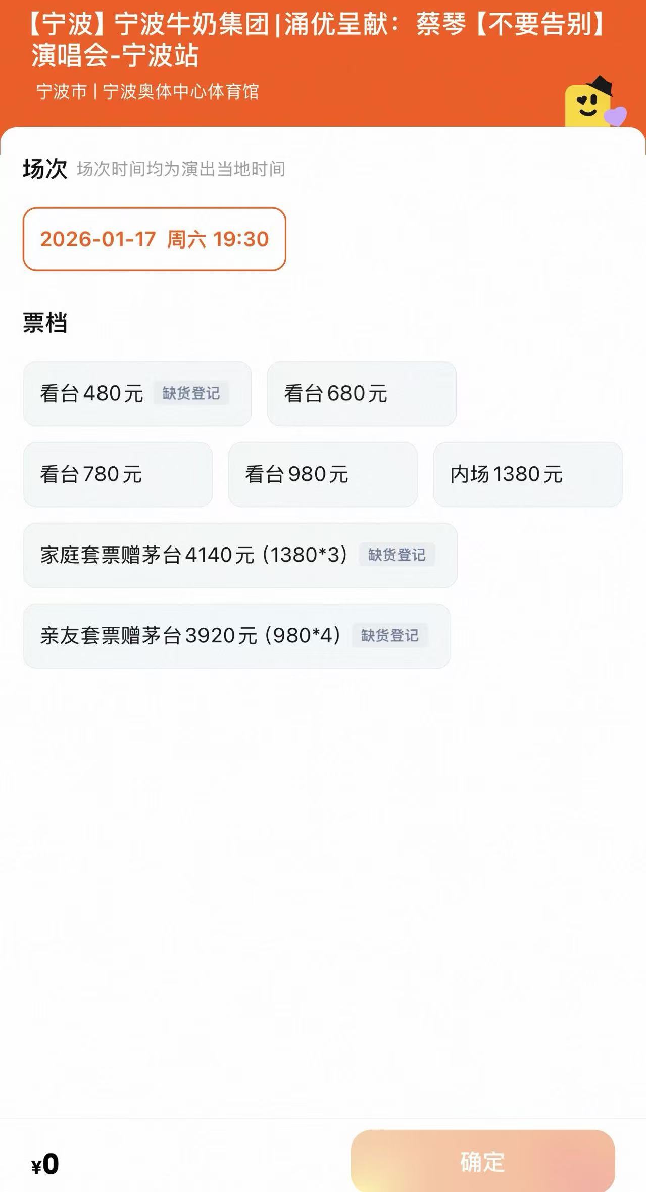 1月15日,界面新闻查询购票平台大麦网发现,目前专属套票已全部售罄,其他类型的票余量充足。其中,“家庭套票赠茅台”售价4140元,“交友套票赠茅台”售价3920元;详情页面显示,每购买一套专属套票,即可获赠一瓶飞天茅台(2026年散瓶),附官方溯源码,品质保证。