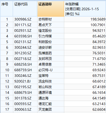 统计数据显示,以最新收盘价计算,志特新材是目前A股市场今年表现最佳股票,其累计涨幅大幅领先排名第二的股票。