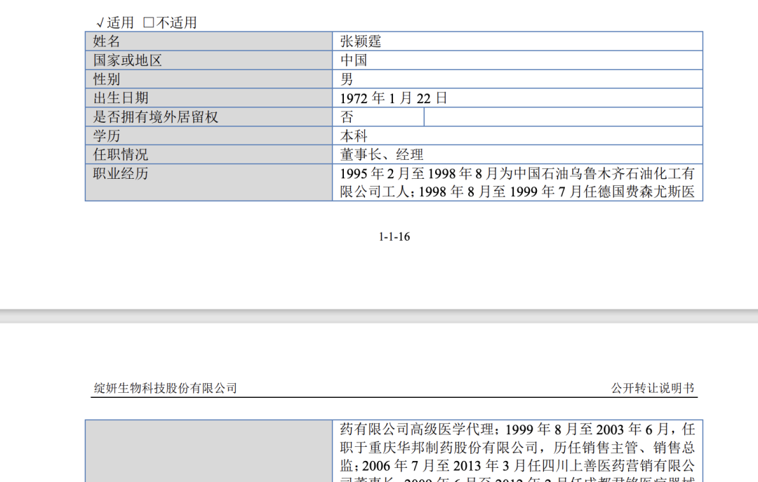 值得注意的是,绽妍生物董事长张颖霆的职业生涯始于1995年,近30年职业经历横跨能源、医药、生物科技等领域。