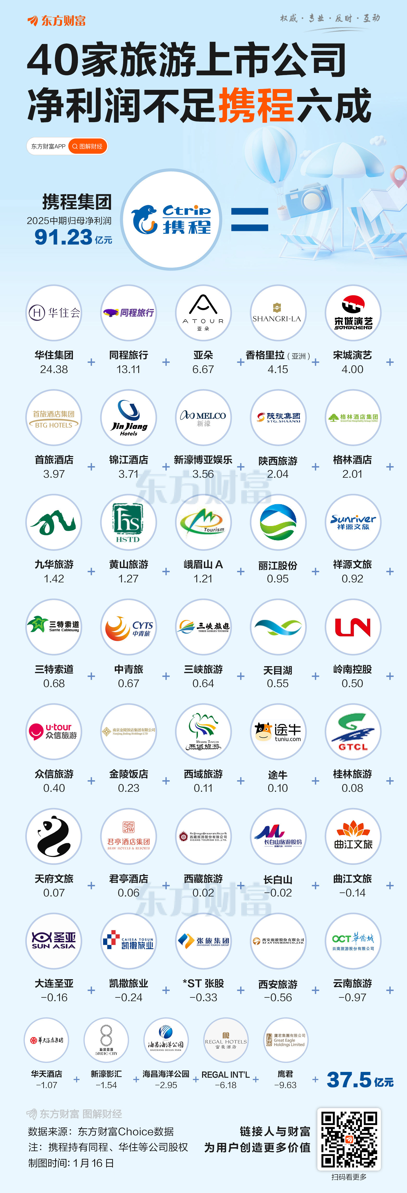 赢麻了!40家旅游酒店上市公司 净利润不及携程六成