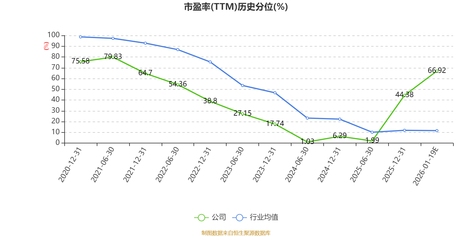市盈率、市净率为负时,不显示当期分位数,会导致折线图中断。