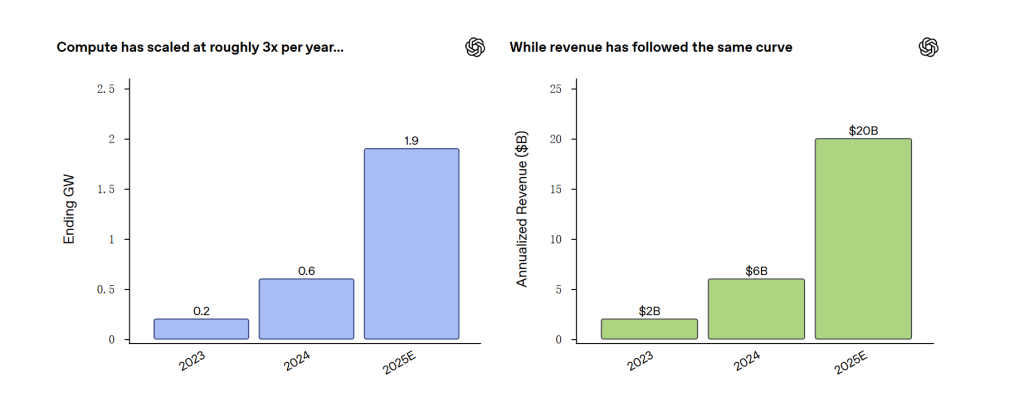 OpenAI公布2025年成绩单,年化收入超200亿美元,算力三年激增近10倍。