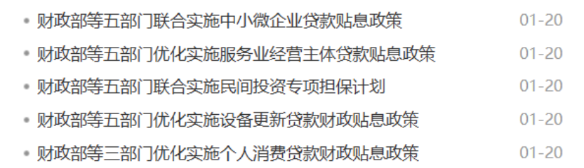 1月20日,财政部官网同时公布五项财政金融协同促内需一揽子政策,分别从加力提振消费、扩大民间投资两个方面,推动扩大有效需求。