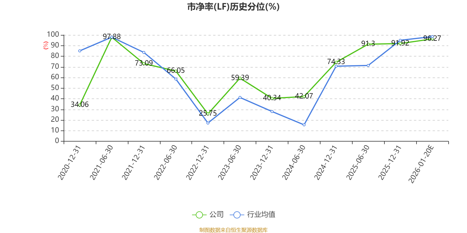 市盈率、市净率为负时,不显示当期分位数,会导致折线图中断。
