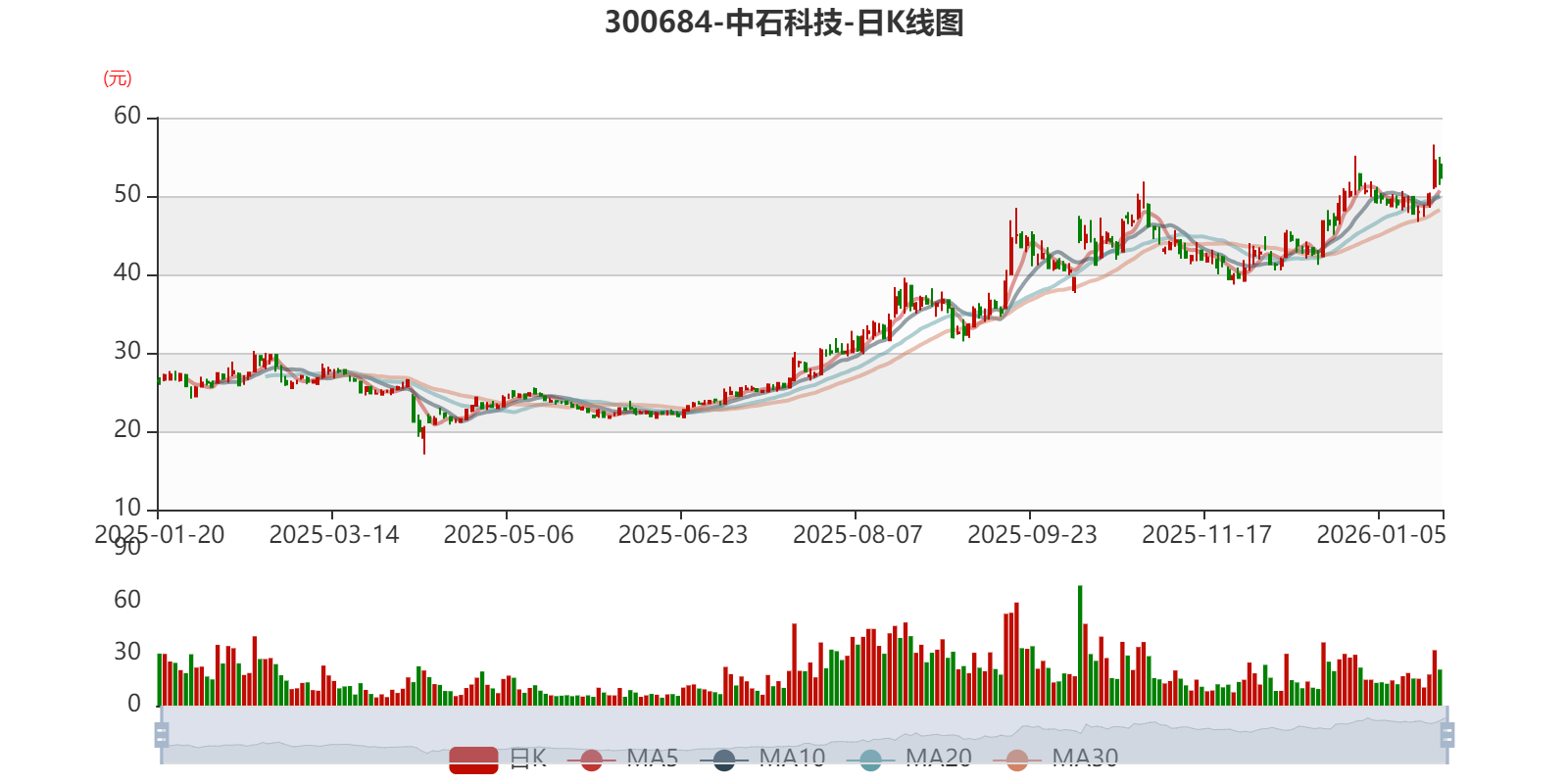 中证智能财讯中石科技(300684)1月20日晚间披露2025年度业绩预告,预计2025年归母净利润3.3亿元至3.7亿元,同比增长63.86%-83.73%;扣非净利润预计3.2亿元至3.6亿元,同比增长83.49%-106.43%。以1月20日收盘价计算,中石科技目前市盈率(TTM)约为42.35倍-47.49倍,市净率(LF)约7.5倍,市销率(TTM)约8.86倍。