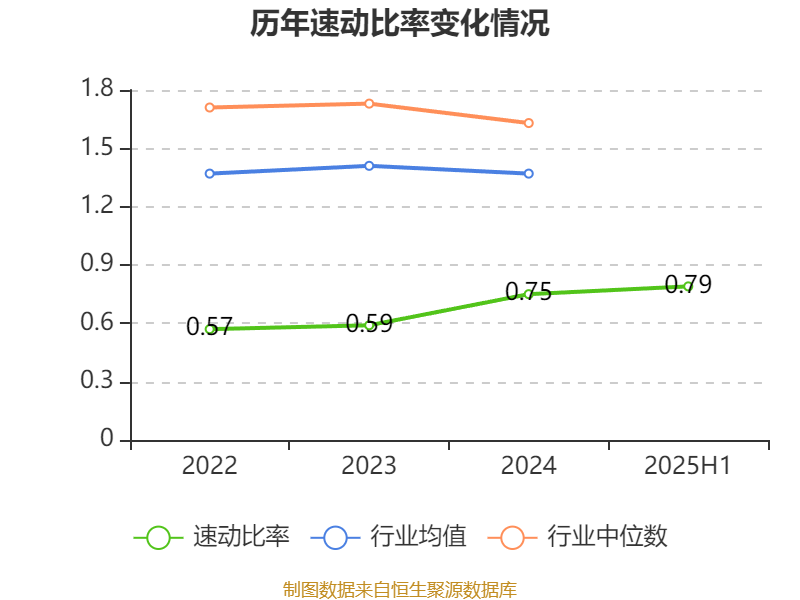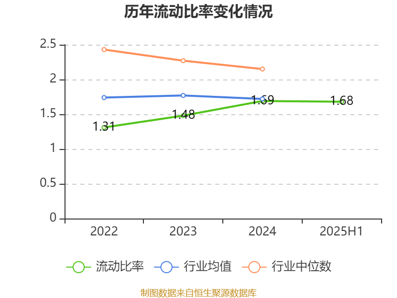2024年,公司流动比率为1.69,速动比率为0.75。2025年上半年,公司流动比率为1.68,速动比率为0.79。