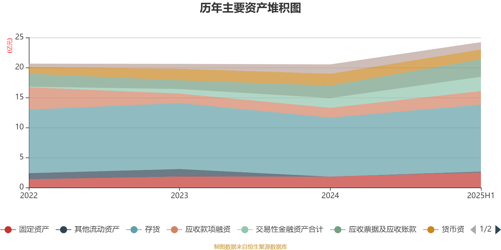 资产重大变化方面,截至2025年上半年,公司货币资金较上年末减少17.01%,占公司总资产比重下降2.83个百分点;在建工程合计较上年末减少98.41%,占公司总资产比重下降2.66个百分点;存货较上年末增加13.33%,占公司总资产比重下降1.93个百分点;交易性金融资产合计较上年末增加46.54%,占公司总资产比重上升1.91个百分点。