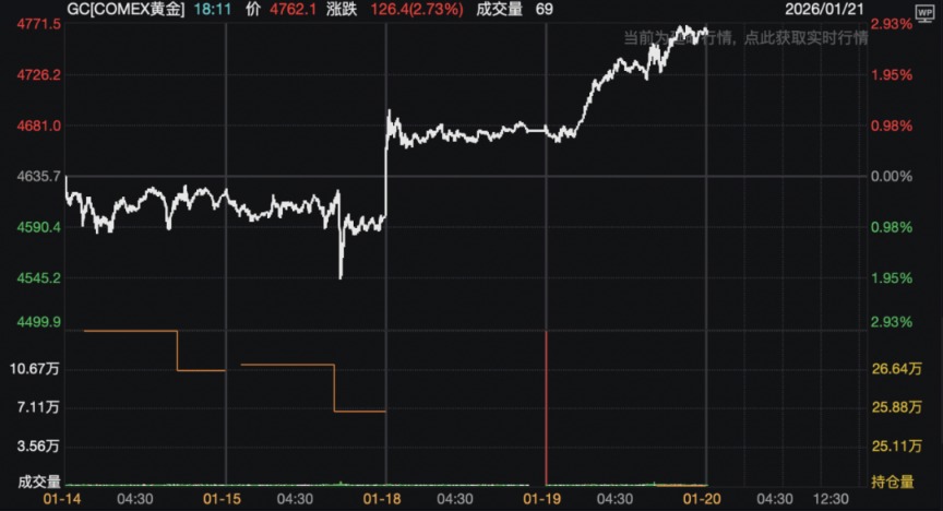 市场避险情绪持续,黄金白银双双刷新历史新高。COMEX黄金期货日内冲破4750美元/盎司,伦敦现银突破95美元/盎司。
