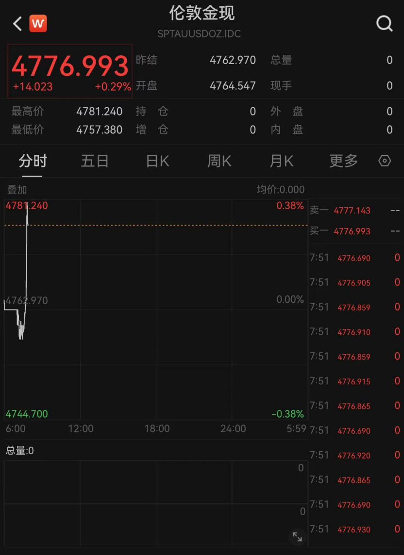 北京时间1月21日早盘,现货黄金、白银短暂跳水后迅速翻红,且黄金再创新高。截至发稿,伦敦现货黄金最高触及4781.24美元/盎司;伦敦现货白银最高涨至94.915美元/盎司。