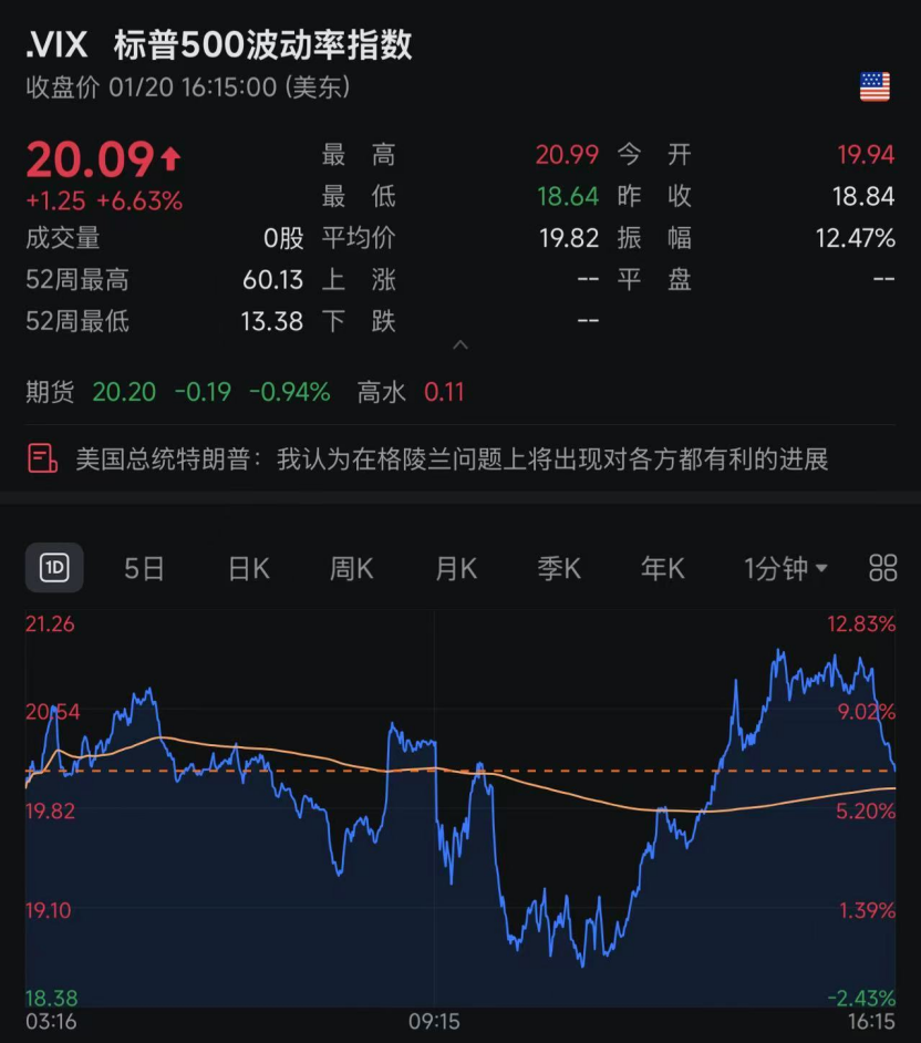 “恐慌指数”,即标普500波动率指数(VIX)一度飙升至20.99,为2025年11月以来最高水平。
