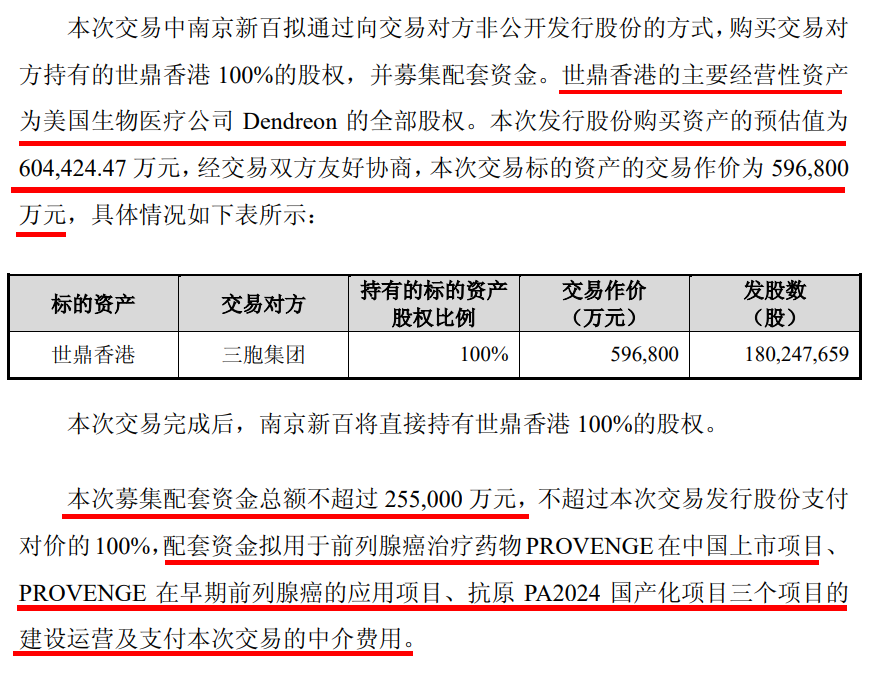 但从收购行为来看,这是南京新百跳出传统百货主业、押注生物医药赛道的战略尝试。在当时,PROVENGE仅在美国和欧盟获批,其全部业务收入均来自美国境内前列腺癌症患者的筛查和治疗。南京新百为了让PROVENGE能在中国上市,重组时还募集配套资金25.5亿元。“该笔资金用于PROVENGE在中国上市项目、PROVENGE在早期前列腺癌的应用项目、抗原PA2024国产化项目的建设运营,以及支付本次交易的中介费用。”南京新百在曾经的募资公告中表示。