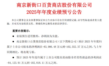 1月19日,南京新街口百货商店股份有限公司(以下简称“南京新百”,600682.SH)发布的2025年业绩预告,令资本市场的目光再次聚焦南京新百。
