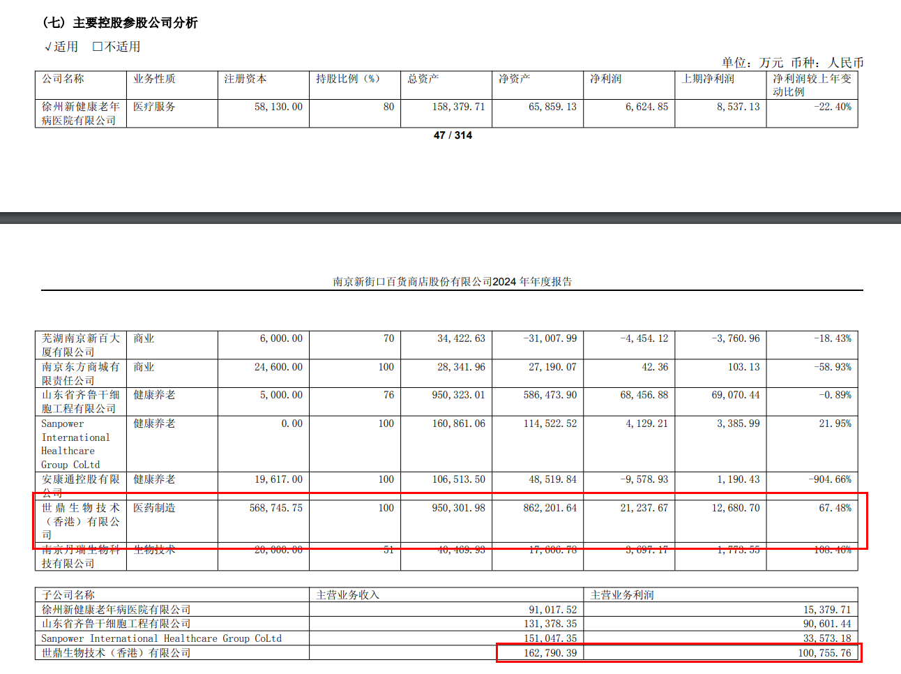不过,从当时的收购行为来看,世鼎香港确实为南京新百带来了不菲的业绩。2024年实现营业收入16.28亿元,占南京新百当期营收的24.30%,净利润2.12亿元。