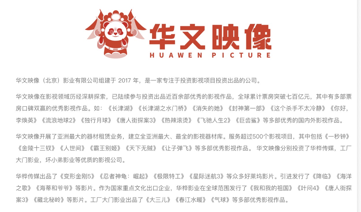 华文映像公司简介。(图片来源:官网截图)