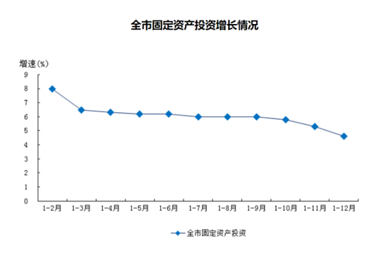 2025年,上海固定资产投资同比增长4.6%,低于经济增速0.8个百分点,并低于年初目标0.2个百分点。
