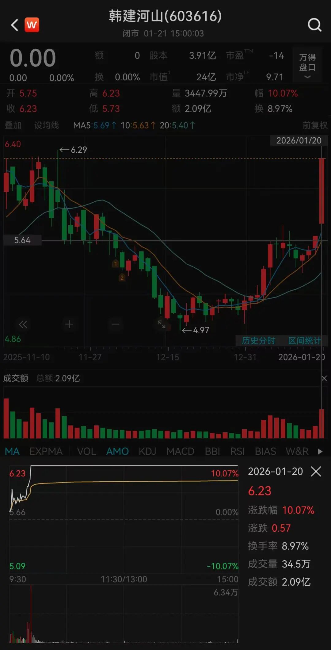 Wind数据显示,停牌前一天(1月20日),公司股价涨停,报6.23元/股。1月20日盘后龙虎榜显示,上榜营业部席位全天成交9000.33万元,占当日总成交金额比例为42.98%。具体来看,开源证券西安西大街证券营业部、国泰海通证券深圳金田路证券营业部分别买入4008.36万元、664.80万元;国泰海通证券总部、高盛(中国)证券上海浦东新区世纪大道证券营业部分别卖出1064.54万元、561.64万元。