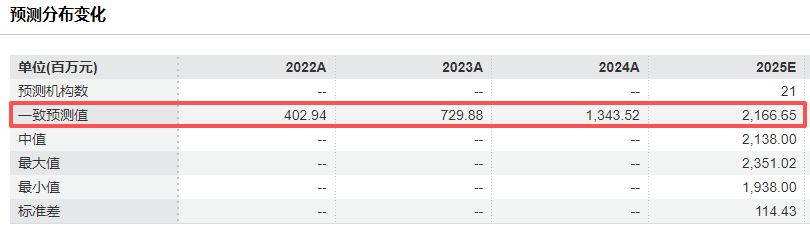 值得注意的是,天孚通信预测的2025年约18.81亿元~21.50亿元的归母净利润区间,并未达到21家机构/券商给出的一致预测(约21.67亿元)。按照天孚通信的预测区间上限(21.5亿元)来计算,也较机构一致预测值少了约0.78%。