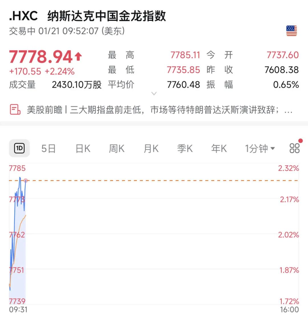 纳斯达克中国金龙指数早盘涨幅持续扩大,现涨超2%。