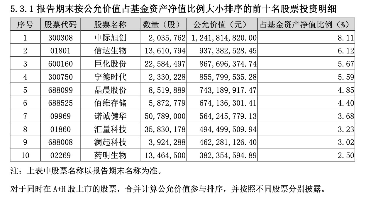 1月21日晚间,知名基金经理谢治宇管理的公募产品披露2025年四季报。