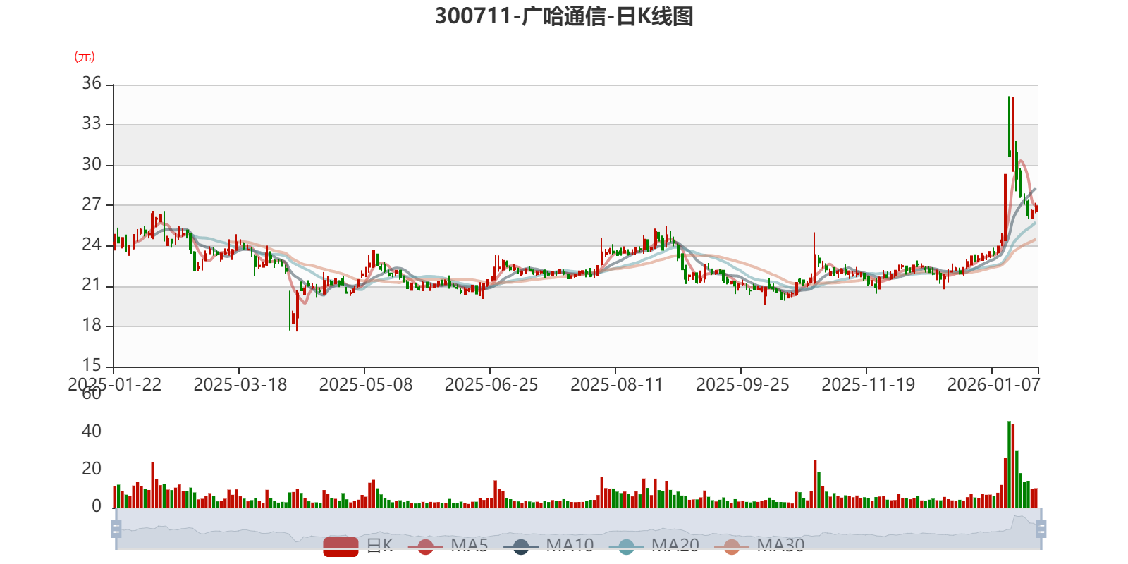 中证智能财讯广哈通信(300711)1月22日晚间披露2025年度业绩预告,预计2025年归母净利润9000万元至9700万元,同比增长21.83%-31.31%;扣非净利润预计7000万元至7700万元,同比增长1.15%-11.27%。以1月22日收盘价计算,广哈通信目前市盈率(TTM)约为69.25倍-74.64倍,市净率(LF)约9.08倍,市销率(TTM)约10.47倍。