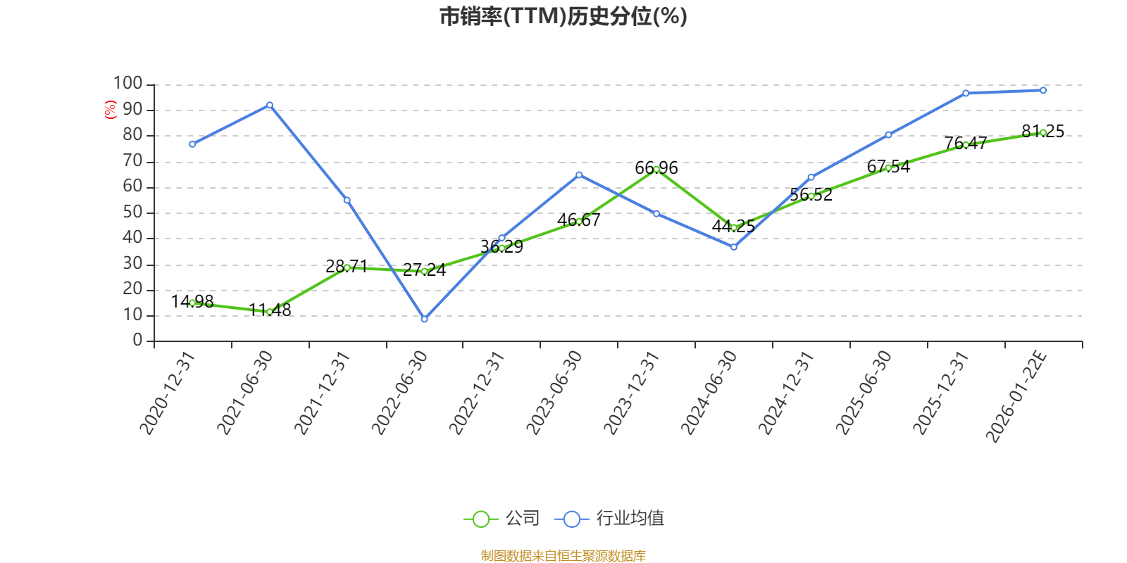 文中市盈率和市销率采用TTM方式,即以截至最近一期财报(含预报)12个月的数据计算。市净率采用LF方式,即以最近一期财报数据计算。三者的分位数计算区间均为公司上市以来至最新公告日。