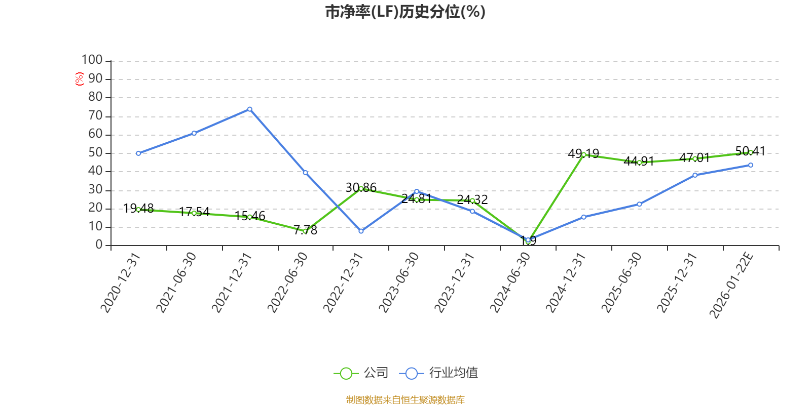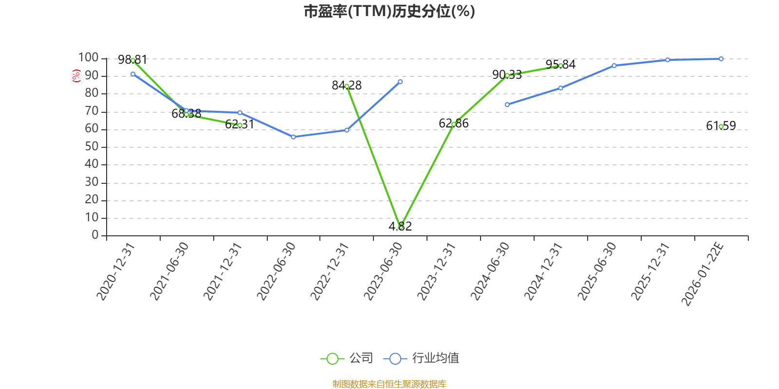 市盈率、市净率为负时,不显示当期分位数,会导致折线图中断。